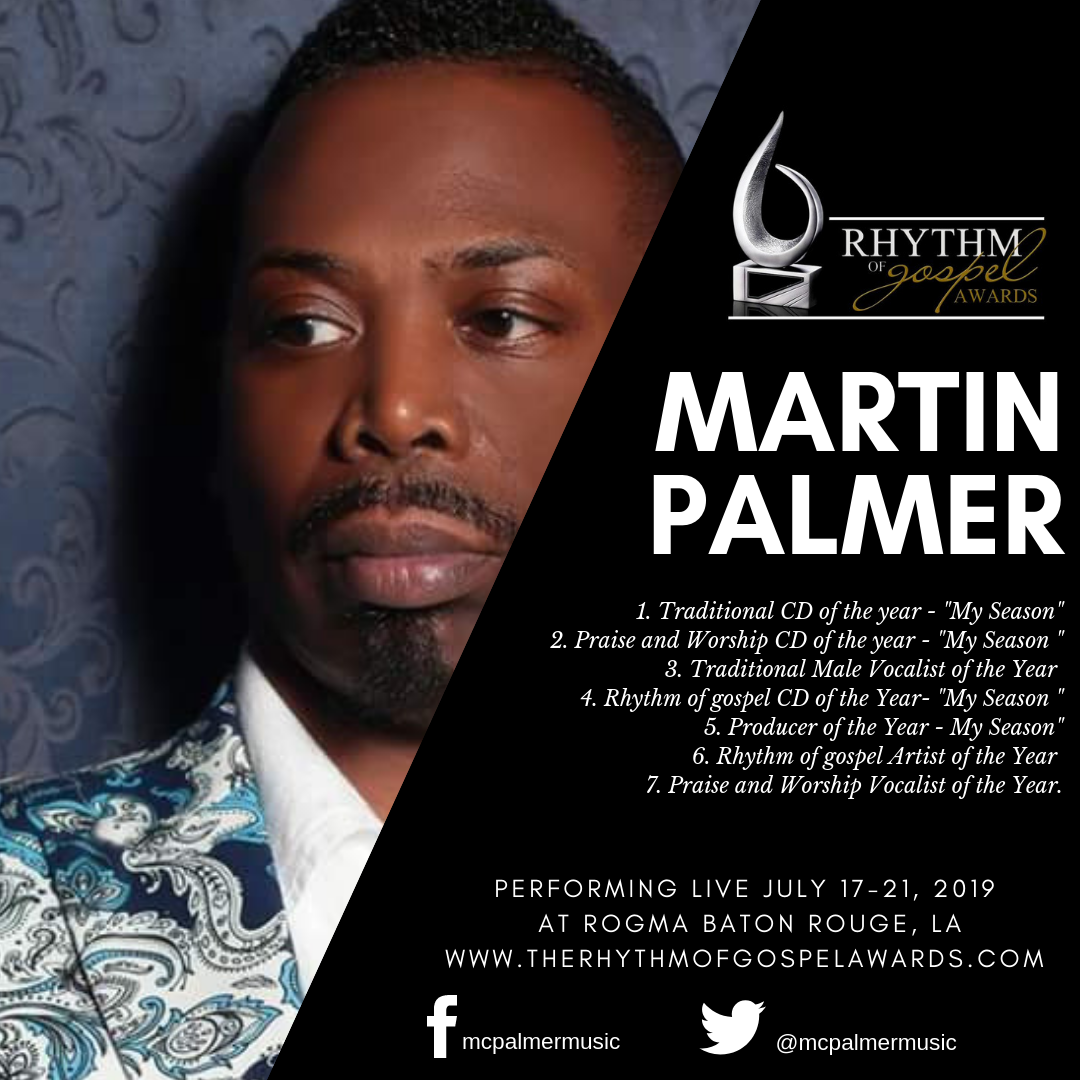 Join Martin Palmer as he performs live at the Rhythm of Gospel events in Baton Rouge Louisiana 7/17 – 7/21/19.